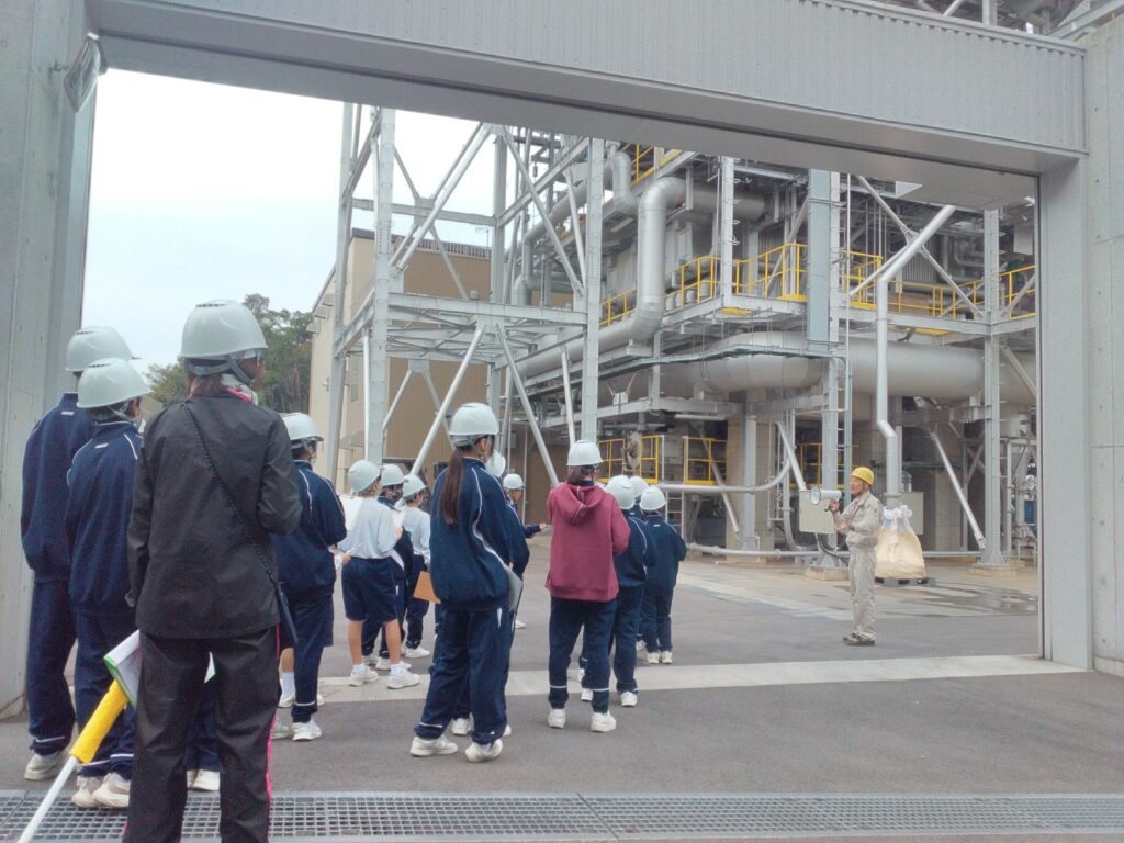 総合学習の社会や職業について学ぶ企業見学の授業として西中学校1年生のみなさまにご見学いただきました。見学会の内容として少し難しい部分があったかもしれませんが、バイオマス発電所とはどういった発電所でどんな仕事をしているのか実際に見て聞いて知っていただけたかと思います。地元にこのような発電所があったのだと初めて知った学生さまが大半だと思いますので、社会勉強としてもとても良い機会だったと思います。ご見学いただきありがとうございました。
